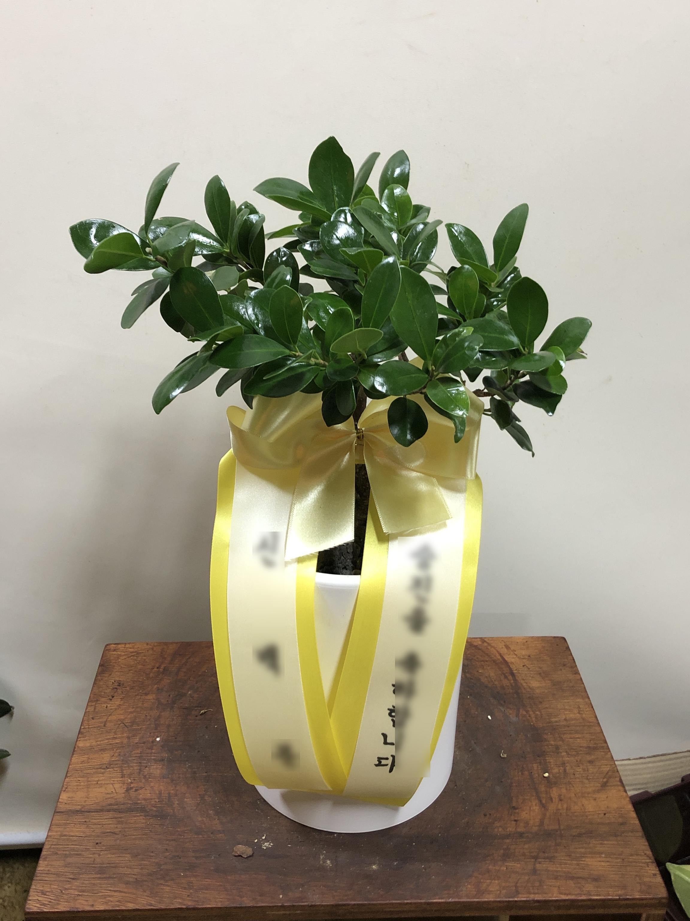 인삼팬다 개업화분 중형 테이블 개업축하 오픈 사무실이전 카페 식당 꽃배달인삼팬더-원통 화이트+나무받침