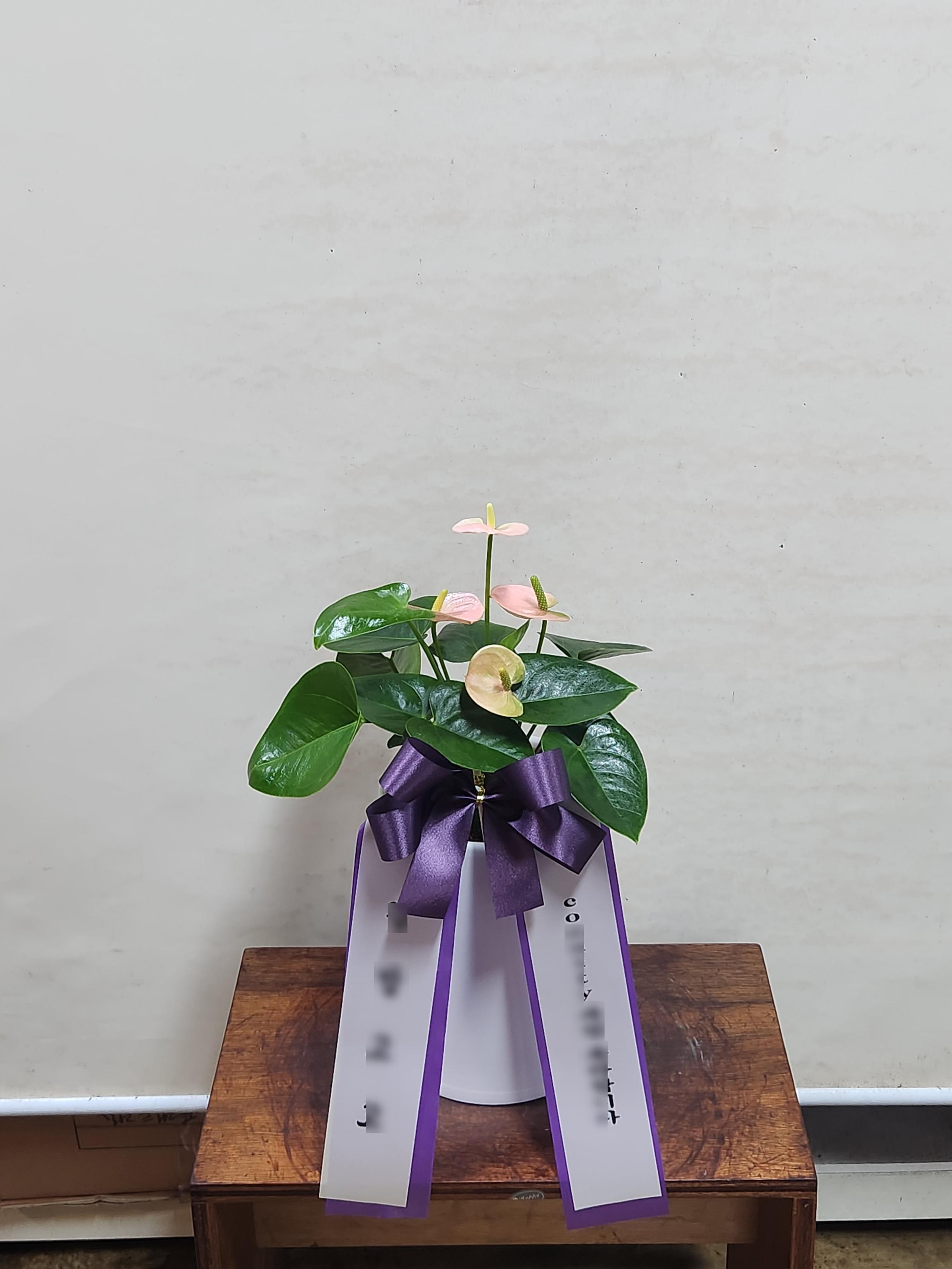 분홍안스리움 안시리움 중형 화분 개업 플랜테리어 실내공기정화식물 인테리어 승진 축하선물분홍 안스리움-직사각 화이트