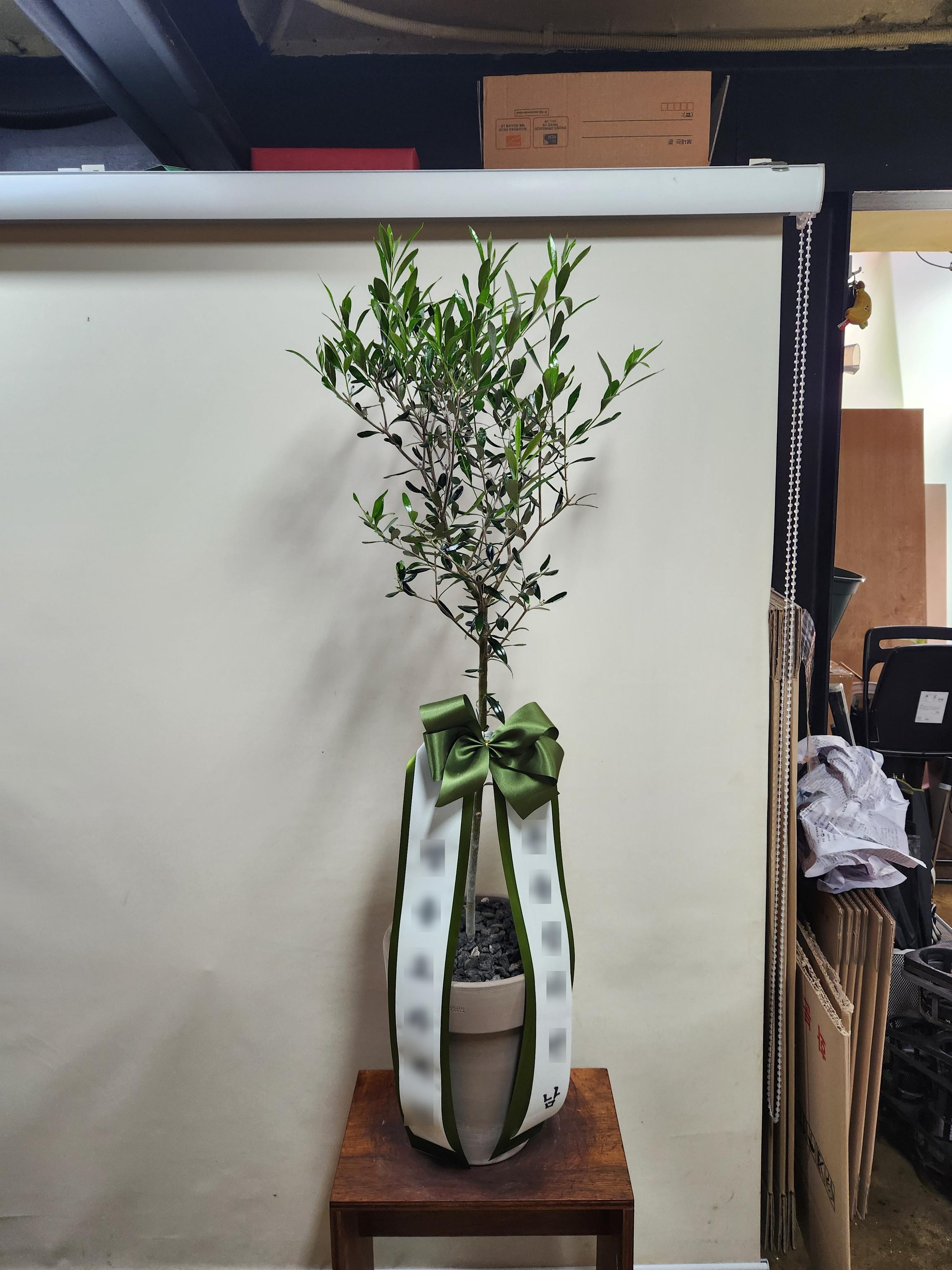 나무 튼실하고 화분이 고급져요 리본도 촌스럼 1도 없이 세련됐고 요청드린 시간에 배송 해주셨어요