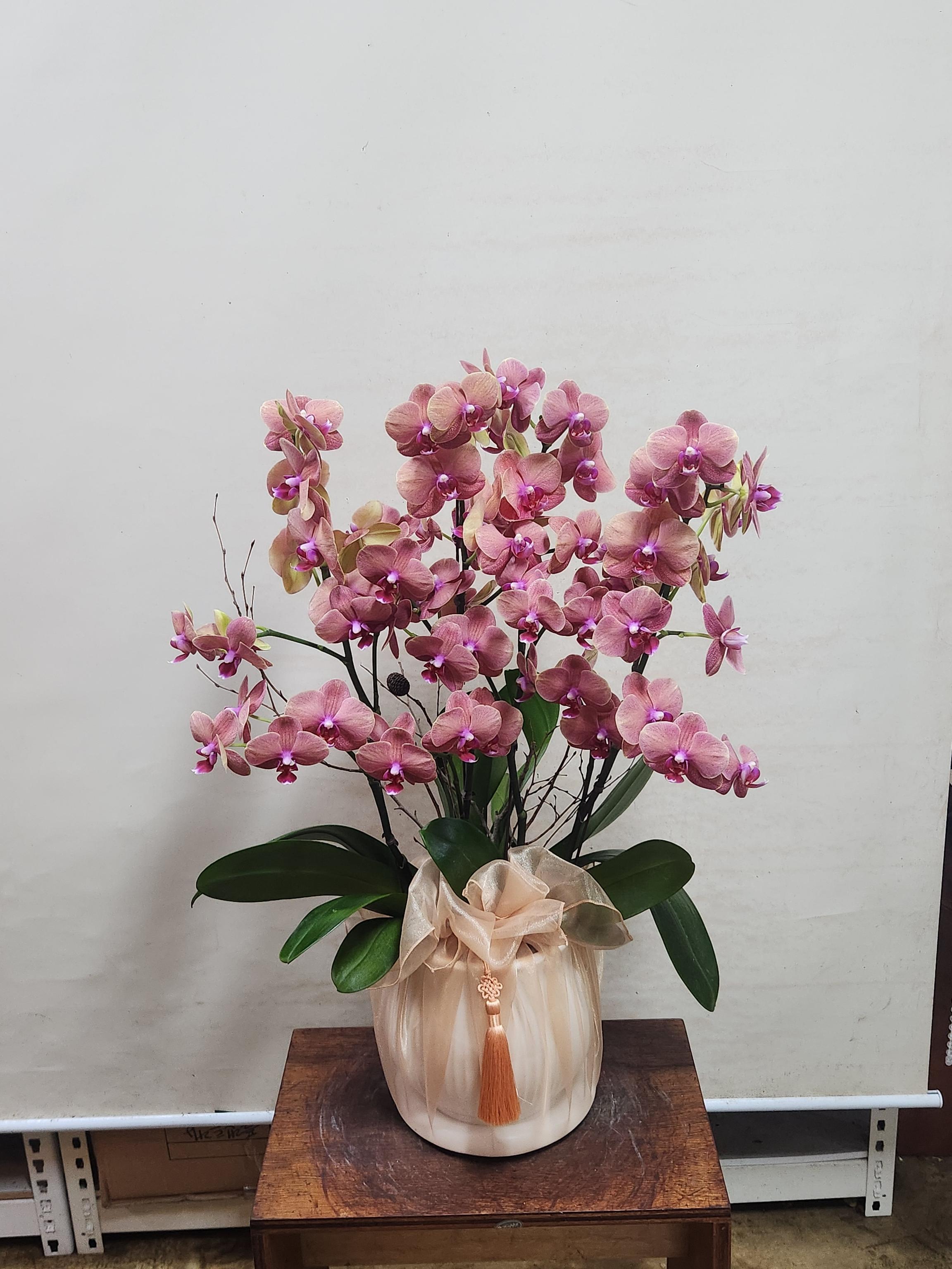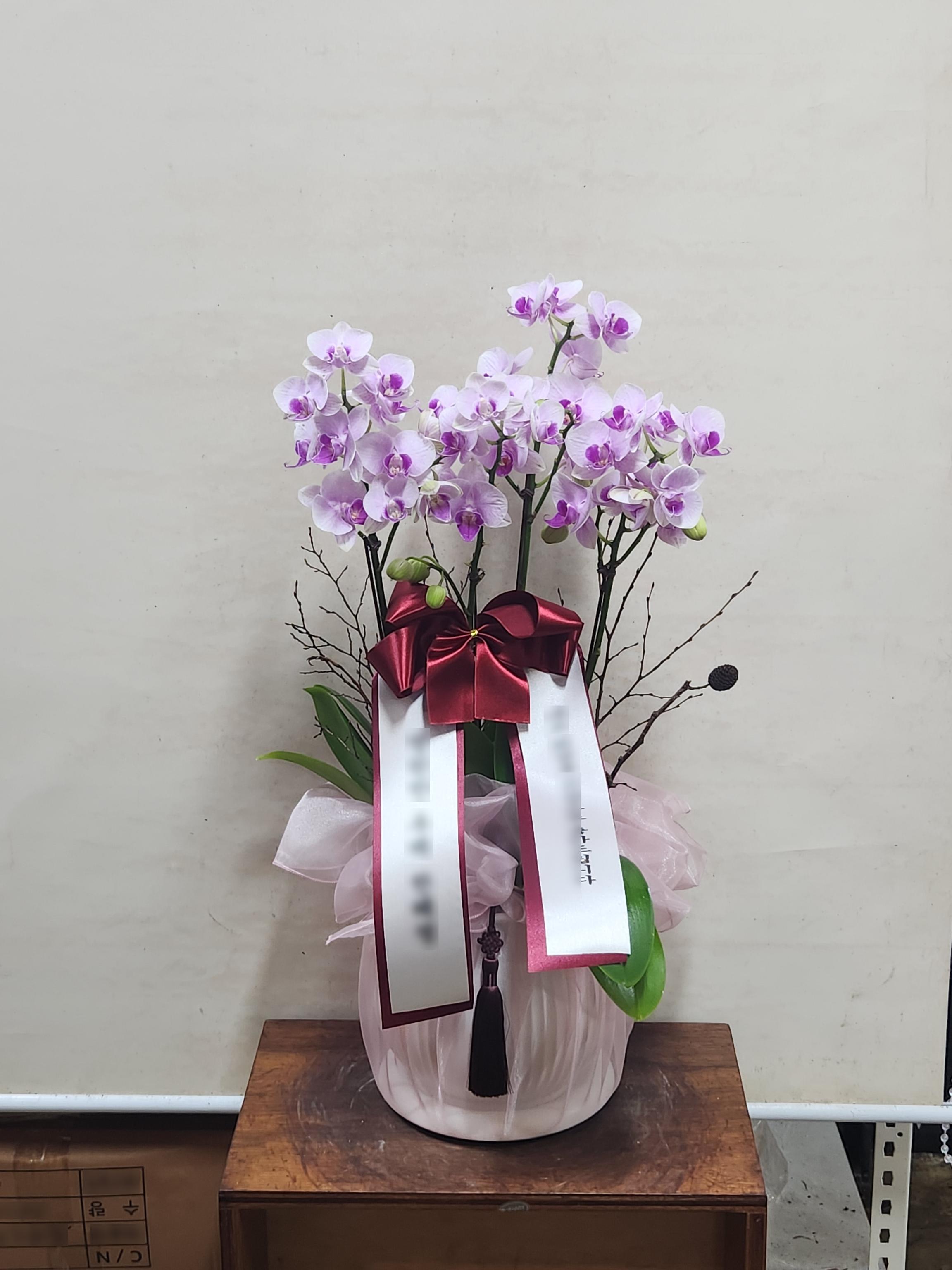 주황 호접란 서양난 주문제작 화분 집들이 선물 신혼집 거실 카페 개업 개원 축하 배달호접 오렌지(4대)-줄무늬 화이트+주황 보자기