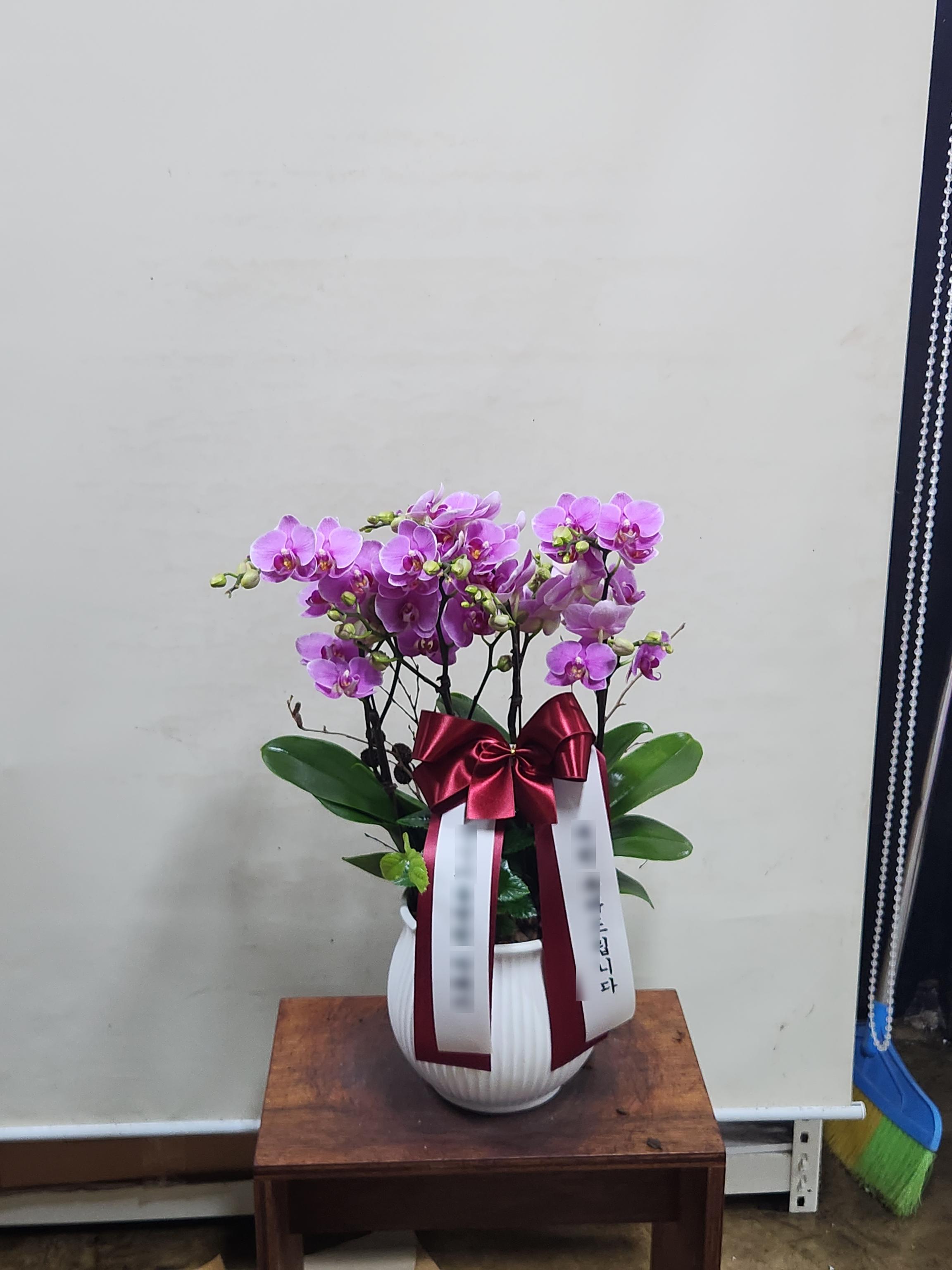 단아한 핑크 호접란 서양난 승진 영전 축하난 부모님 선물 꽃배달 개업화분 오픈 사무실이전호접 분홍(2대)-줄무늬 화이트+그레이 보자기