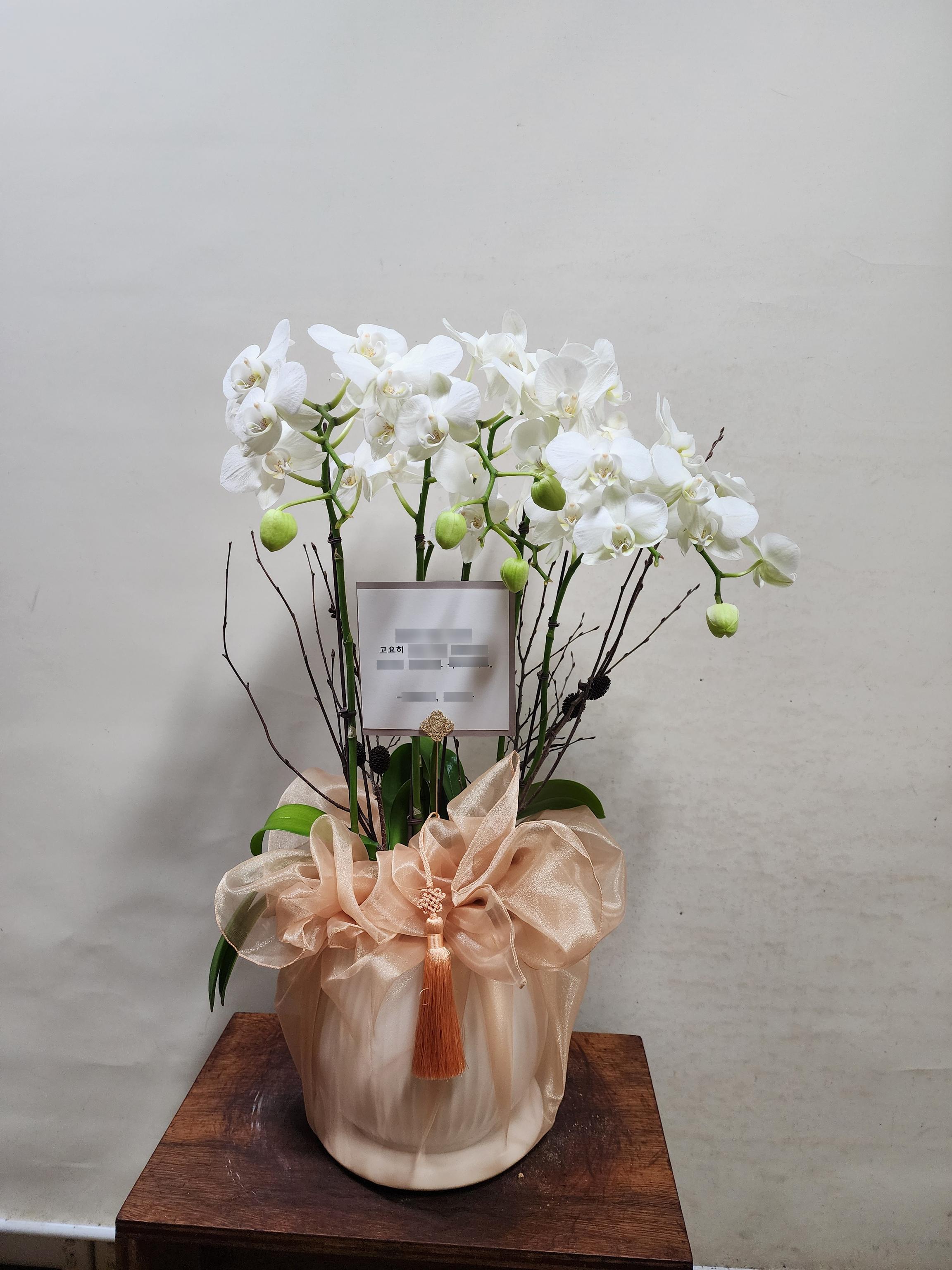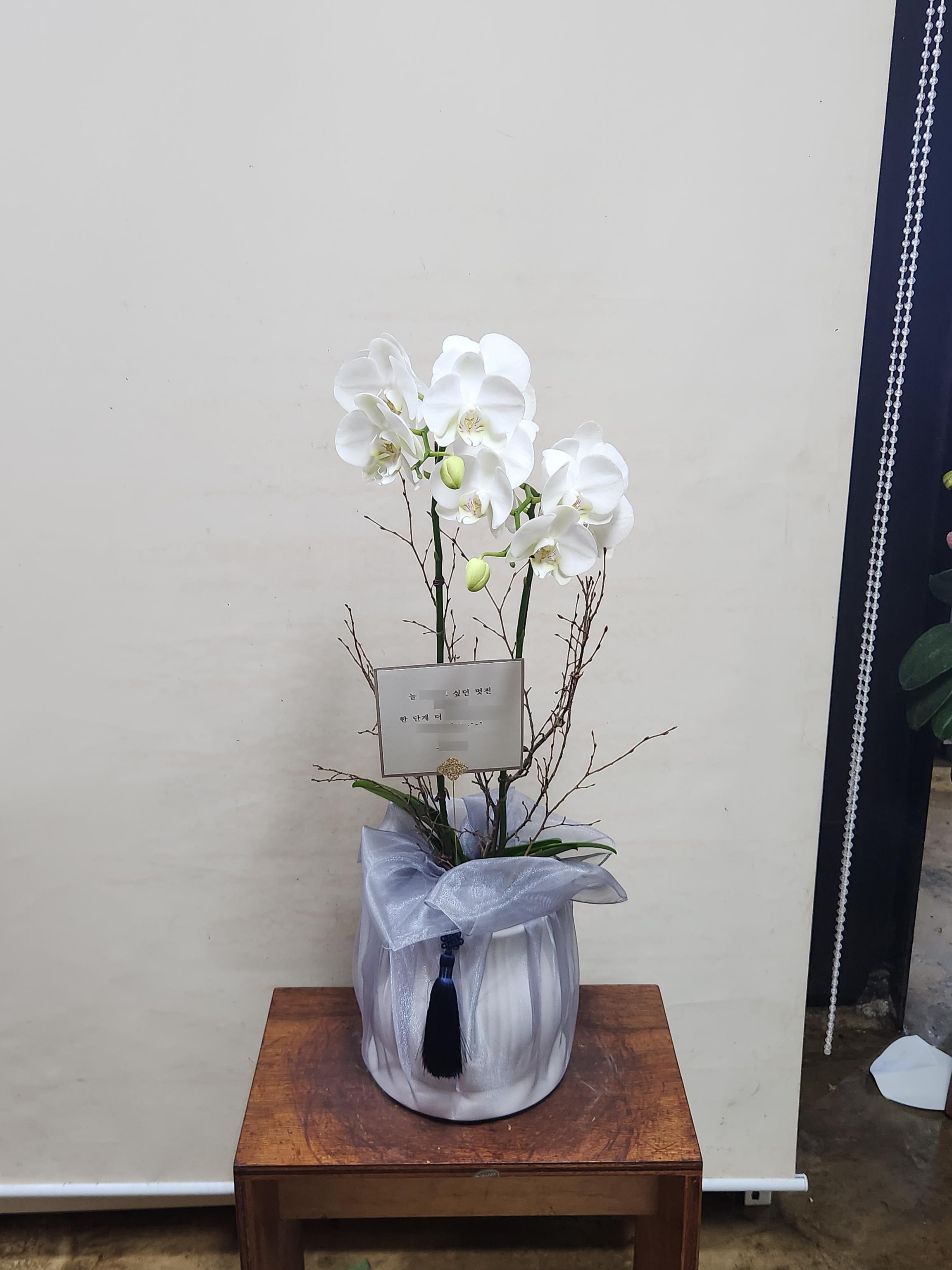 화이트 호접란 서양난 승진 영전 축하난 부모님 선물 꽃배달 개업화분 오픈 사무실이전 카페호접 화이트(4대)-줄무늬 화이트+그레이 보자기