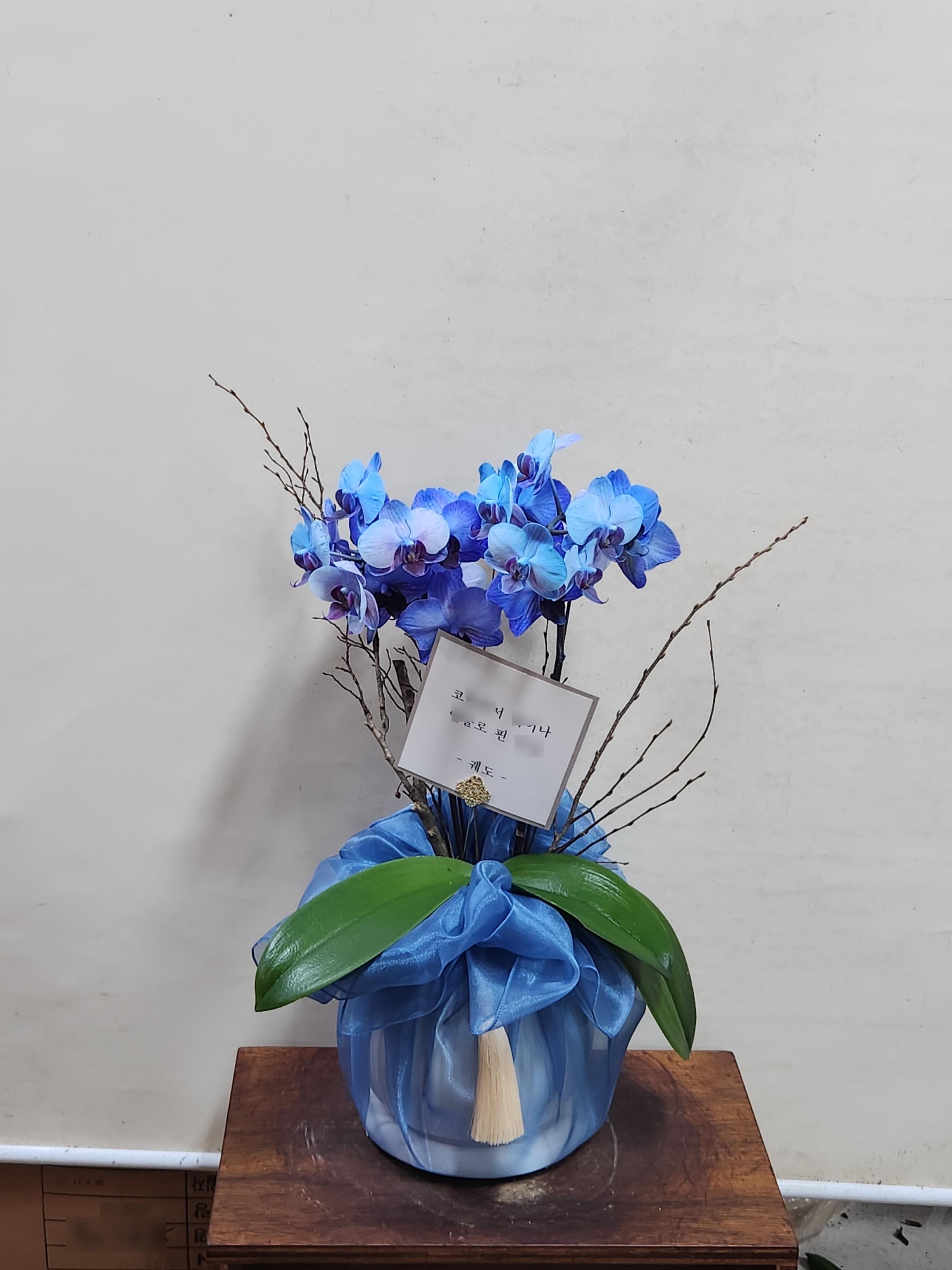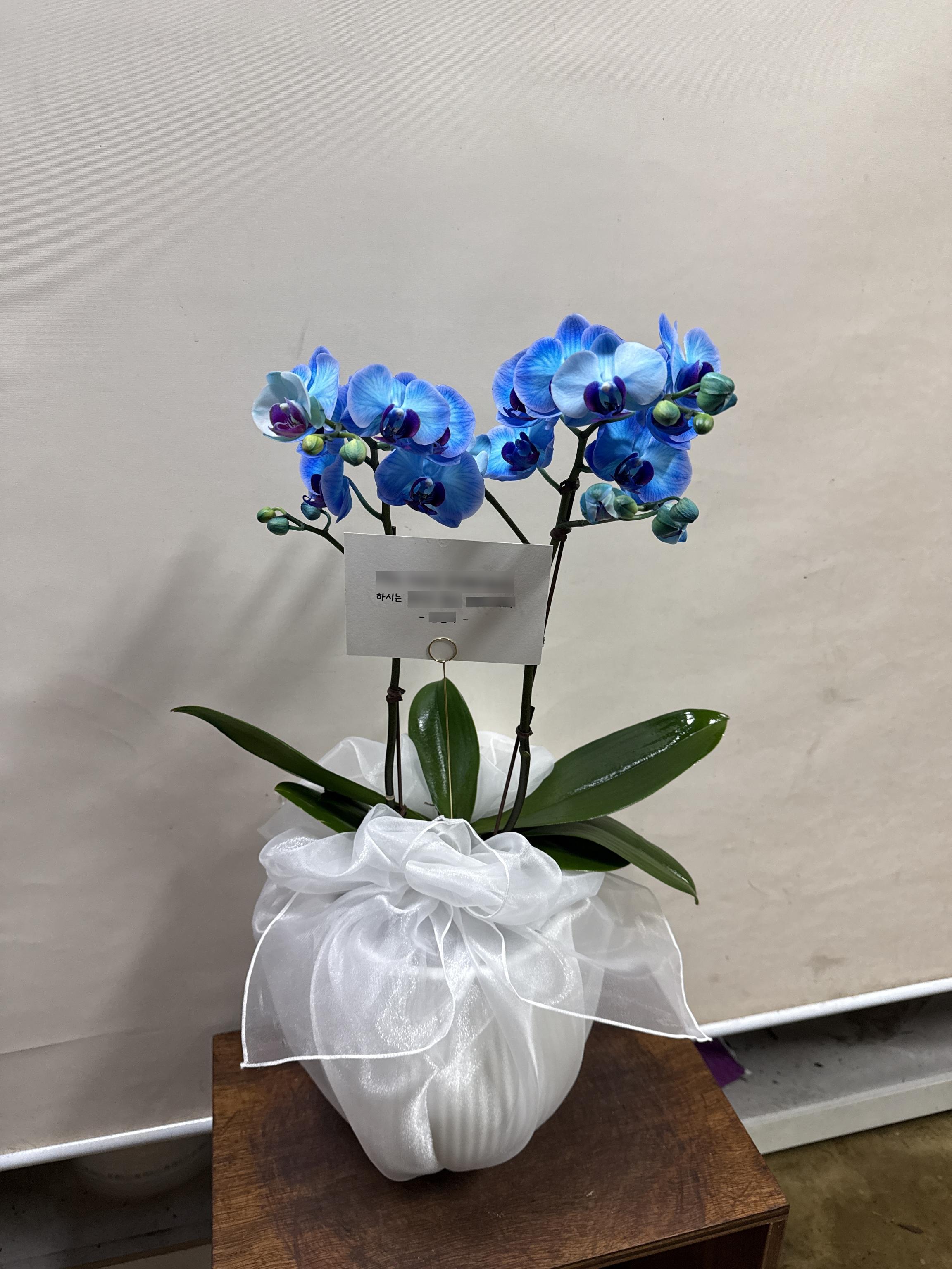 블루 호접란 서양난 승진 영전 축하난 부모님 선물 꽃배달 개업화분 오픈 사무실이전 카페호접 블루(4대)-줄무늬 화이트+블루 보자기