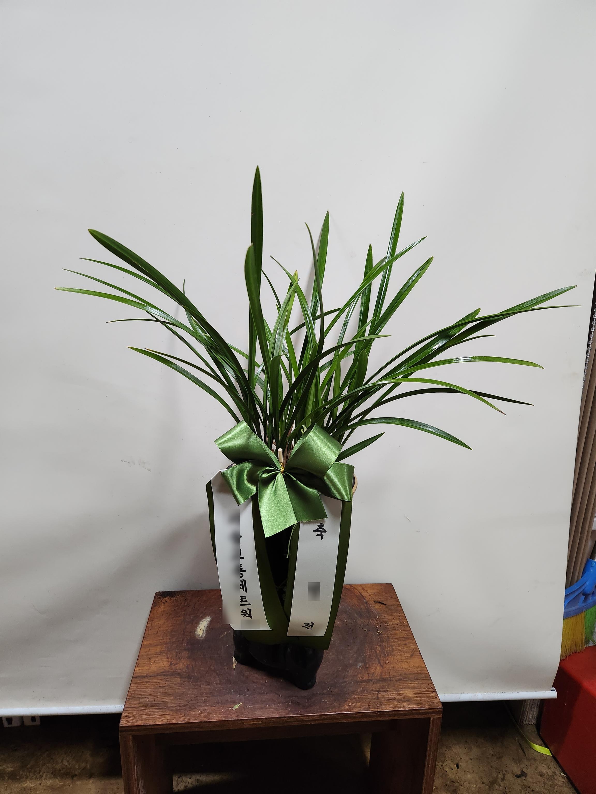 철골소심 동양난 승진 영전 축하난 동양란 부모님 선물 꽃배달 개업화분 문구 오픈 사무실이전철골소심-원통 블랙+남색 보자기