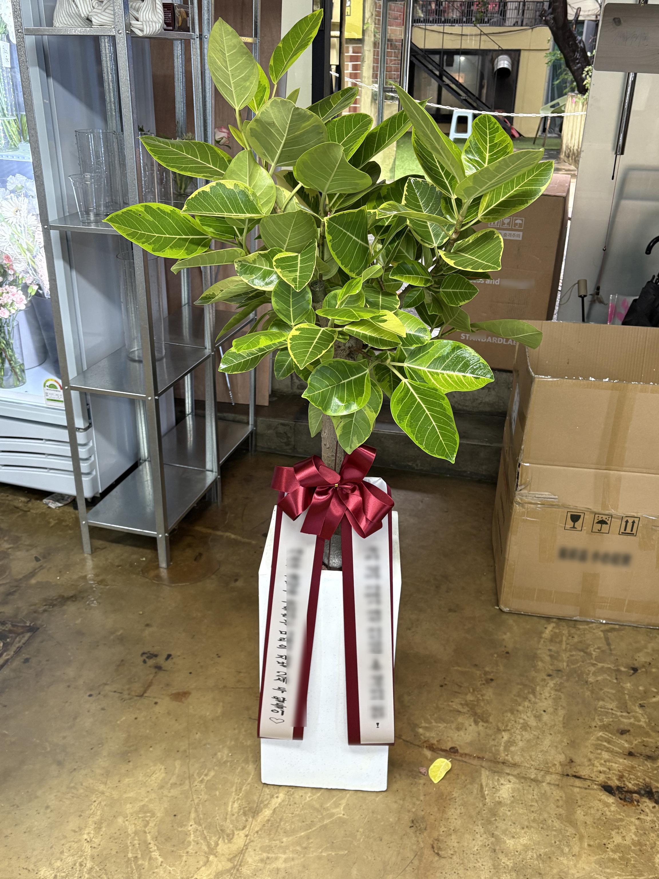 개업화분 중대형 스탠드 금전수 개업축하 오픈 사무실이전 카페 식당 꽃배달(추천)뱅갈고무나무-직사각 화이트