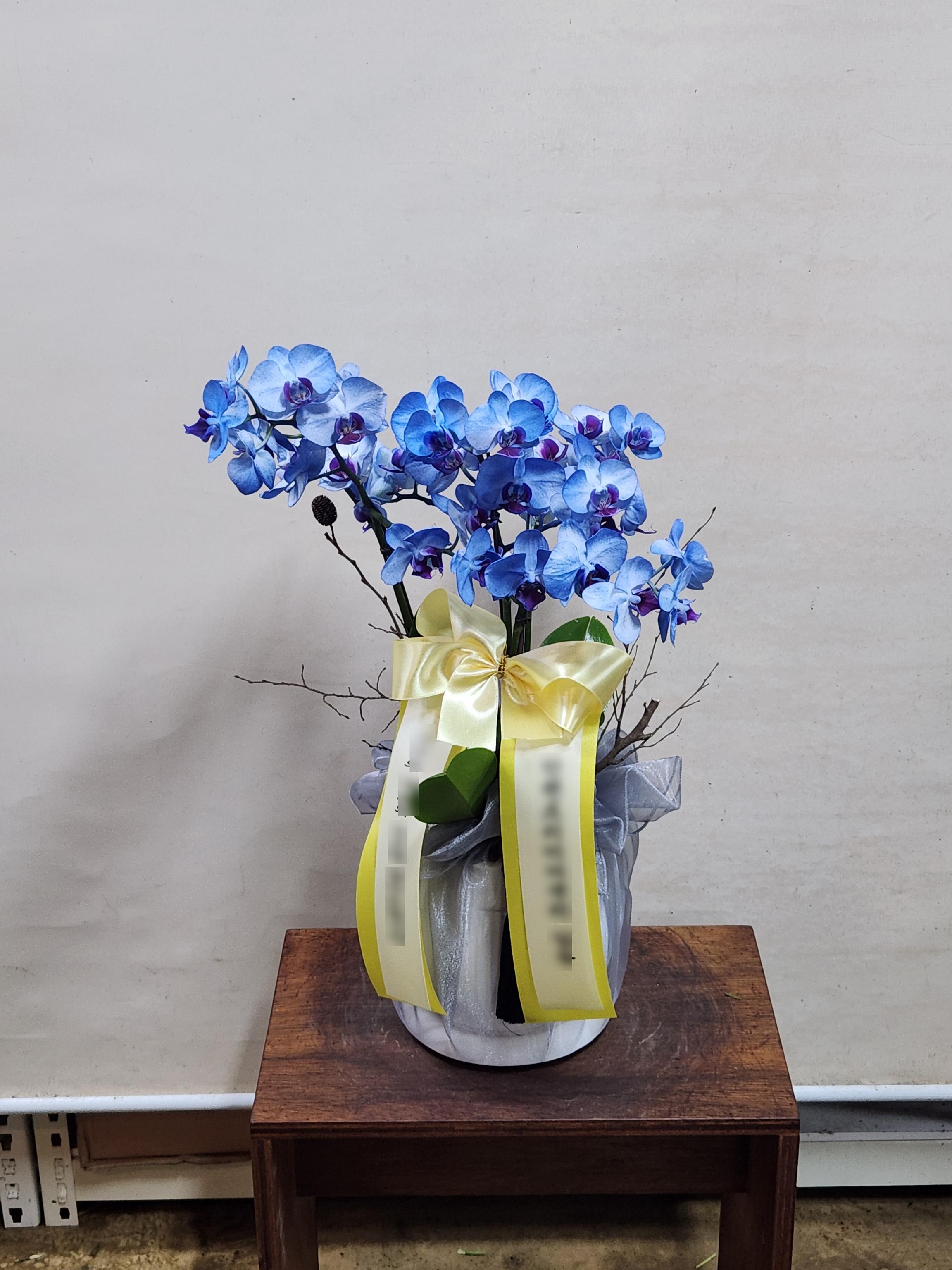 승진 영전 축하난 호접란 부모님 선물 꽃배달 개업화분 문구 오픈 사무실이전 카페호접 블루(4대)-줄무늬 화이트+그레이 보자기