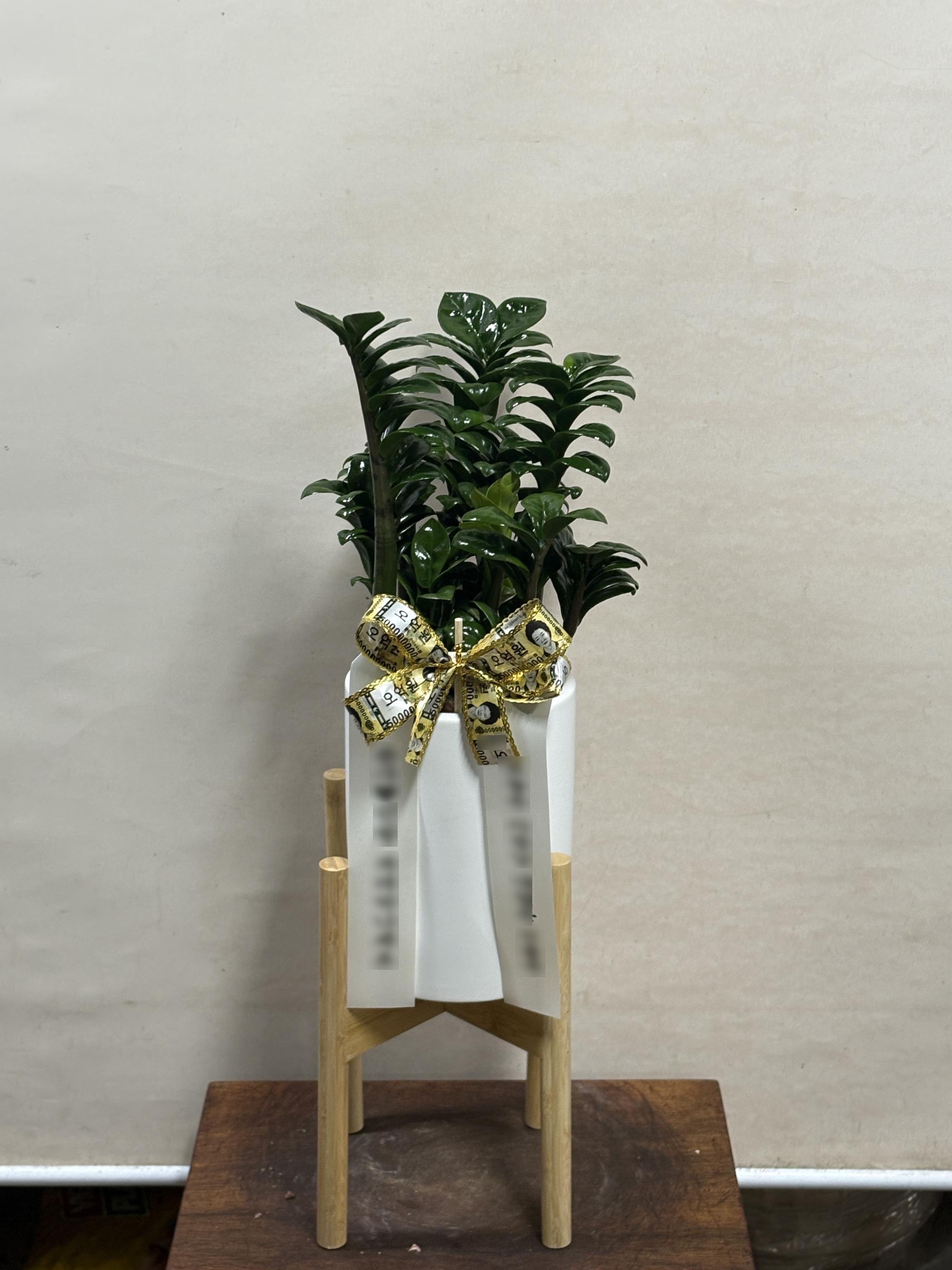 금전수 돈나무 중형 주문제작 화분 집들이 선물 신혼집 거실 카페 개업 개원 축하 배달(추천)금전수-원통 화이트+나무받침