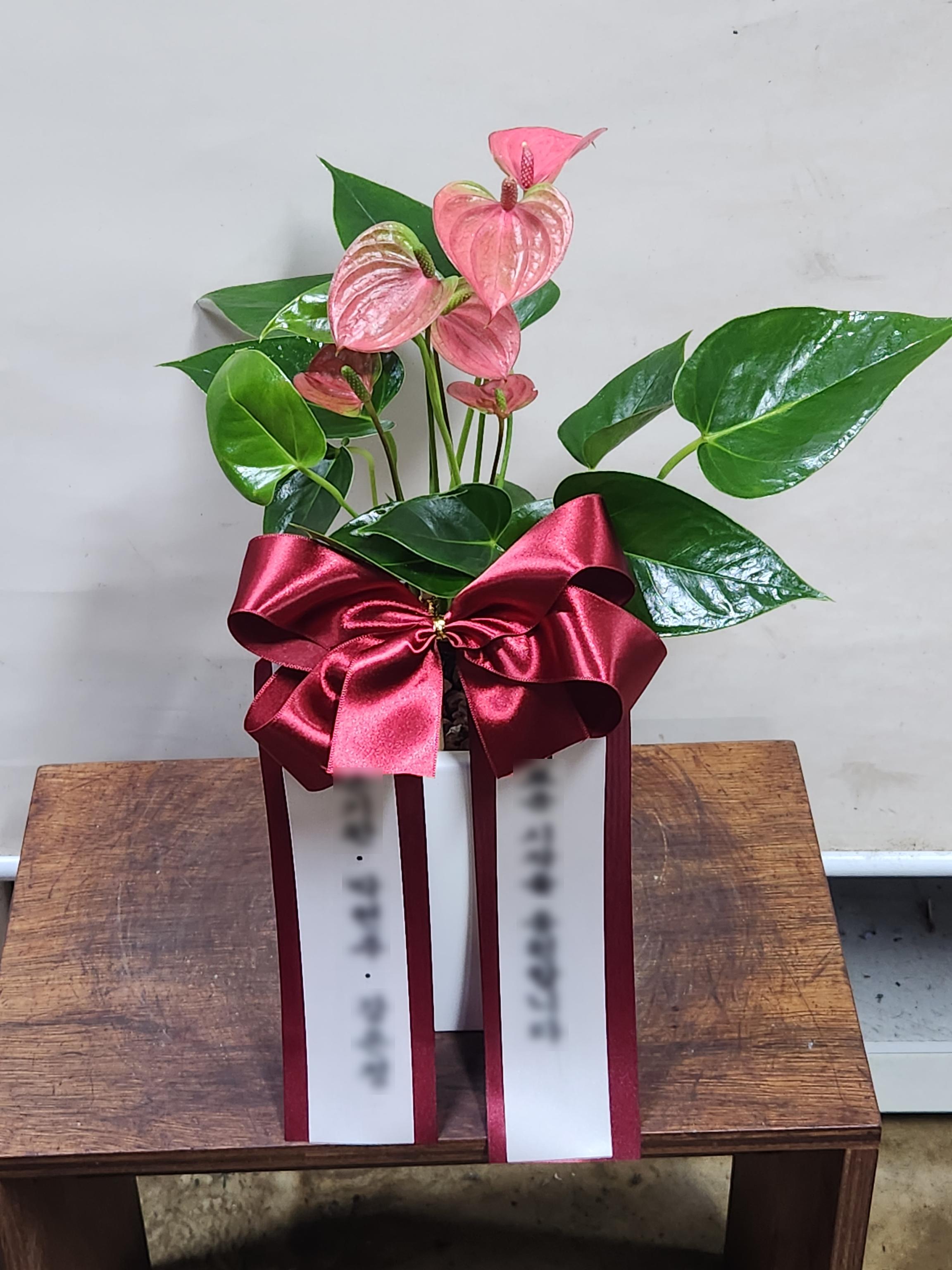 분홍안스리움 안시리움 중형 화분 개업 플랜테리어 실내공기정화식물 인테리어 승진 축하선물분홍 안스리움-직사각 화이트