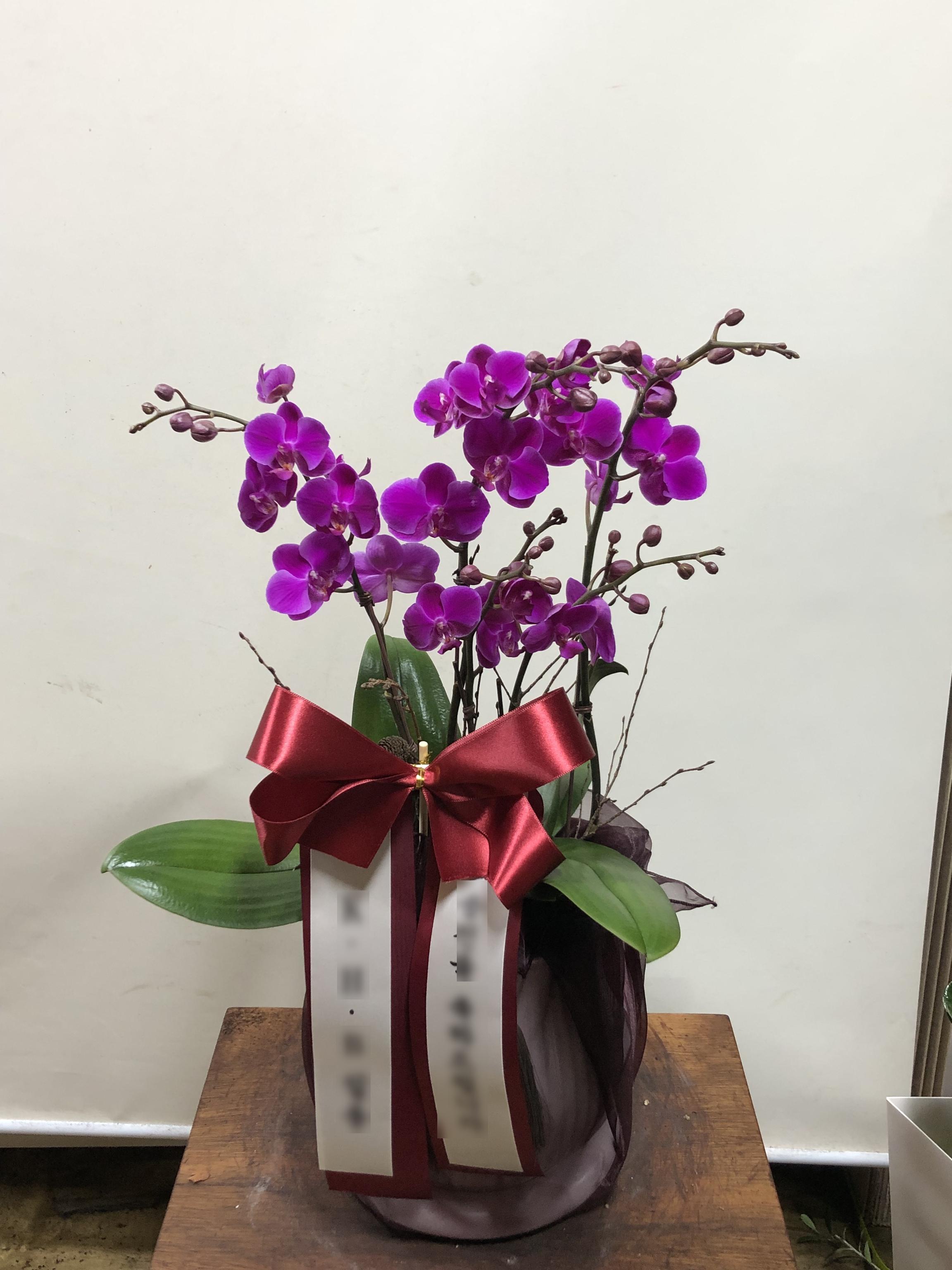 만천홍 호접란 서양난 승진 영전 축하난 부모님 선물 꽃배달 개업화분 오픈 사무실이전 카페호접 자주색(4대)-줄무늬 화이트+팥색 보자기