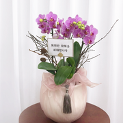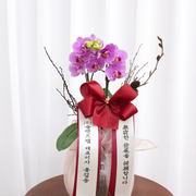 단아한 핑크 호접란 서양난 승진 영전 축하난 부모님 선물 꽃배달 개업화분 오픈 사무실이전호접 분홍(2대)-줄무늬 화이트+그레이 보자기