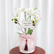 화이트 호접란 서양난 승진 영전 축하난 부모님 선물 꽃배달 개업화분 오픈 사무실이전 카페호접 화이트(2대)-줄무늬 화이트+화이트 보자기