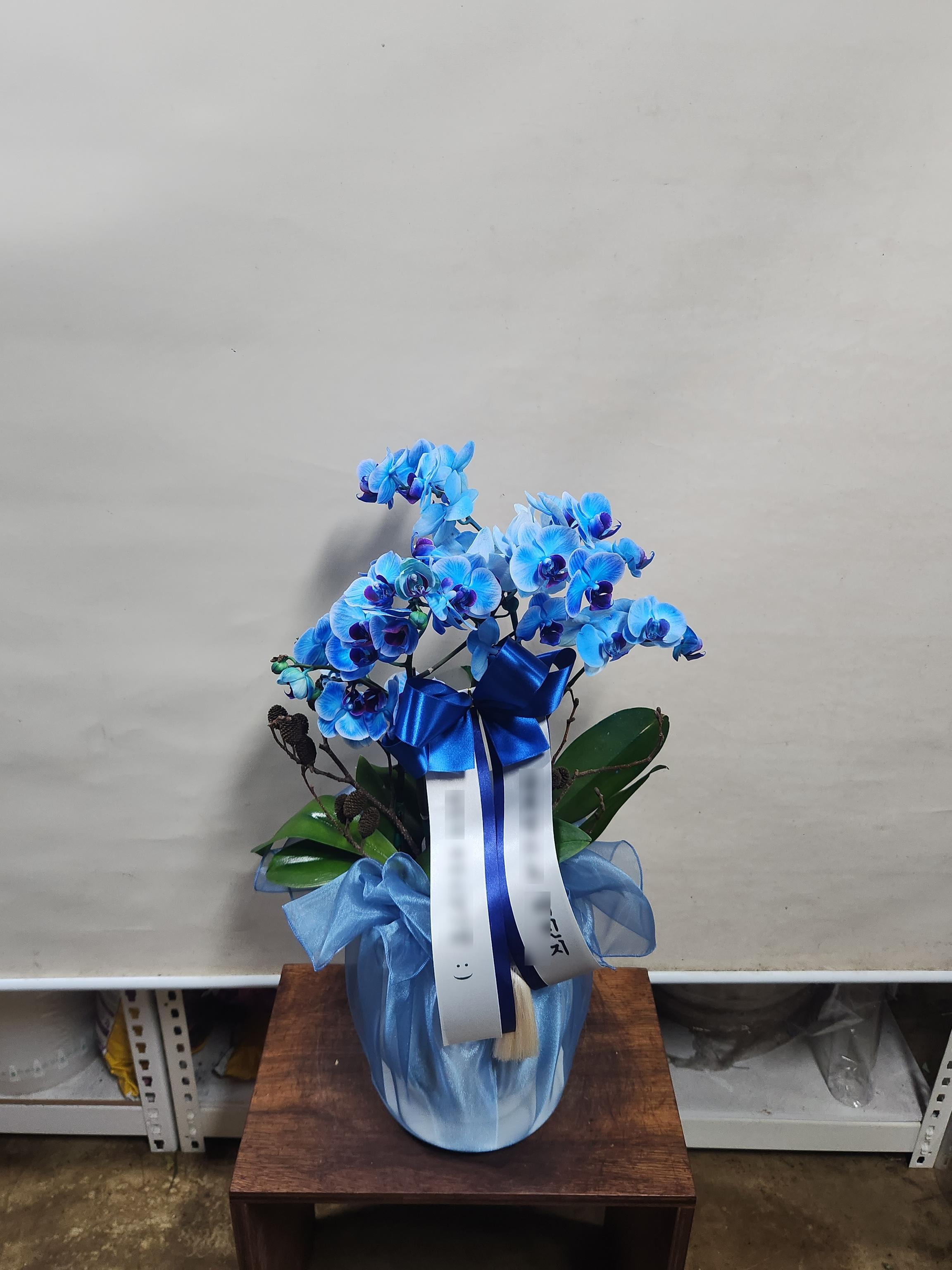 블루 호접란 서양난 승진 영전 축하난 부모님 선물 꽃배달 개업화분 오픈 사무실이전 카페호접 블루(2대)-줄무늬 화이트+블루 보자기