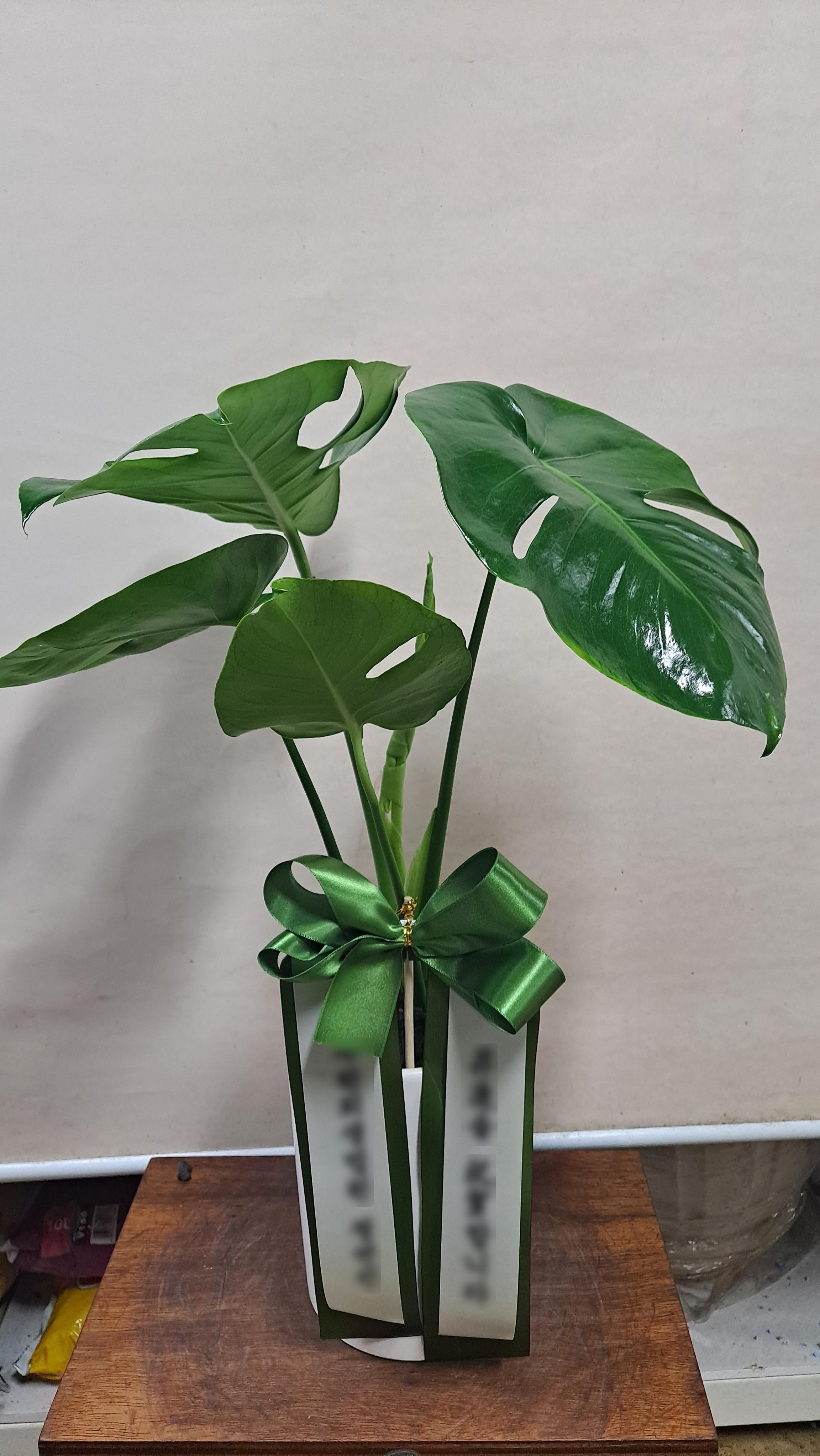 개업화분 중형 테이블 금전수 개업축하 오픈 사무실이전 카페 식당 꽃배달몬스테라-원통 화이트