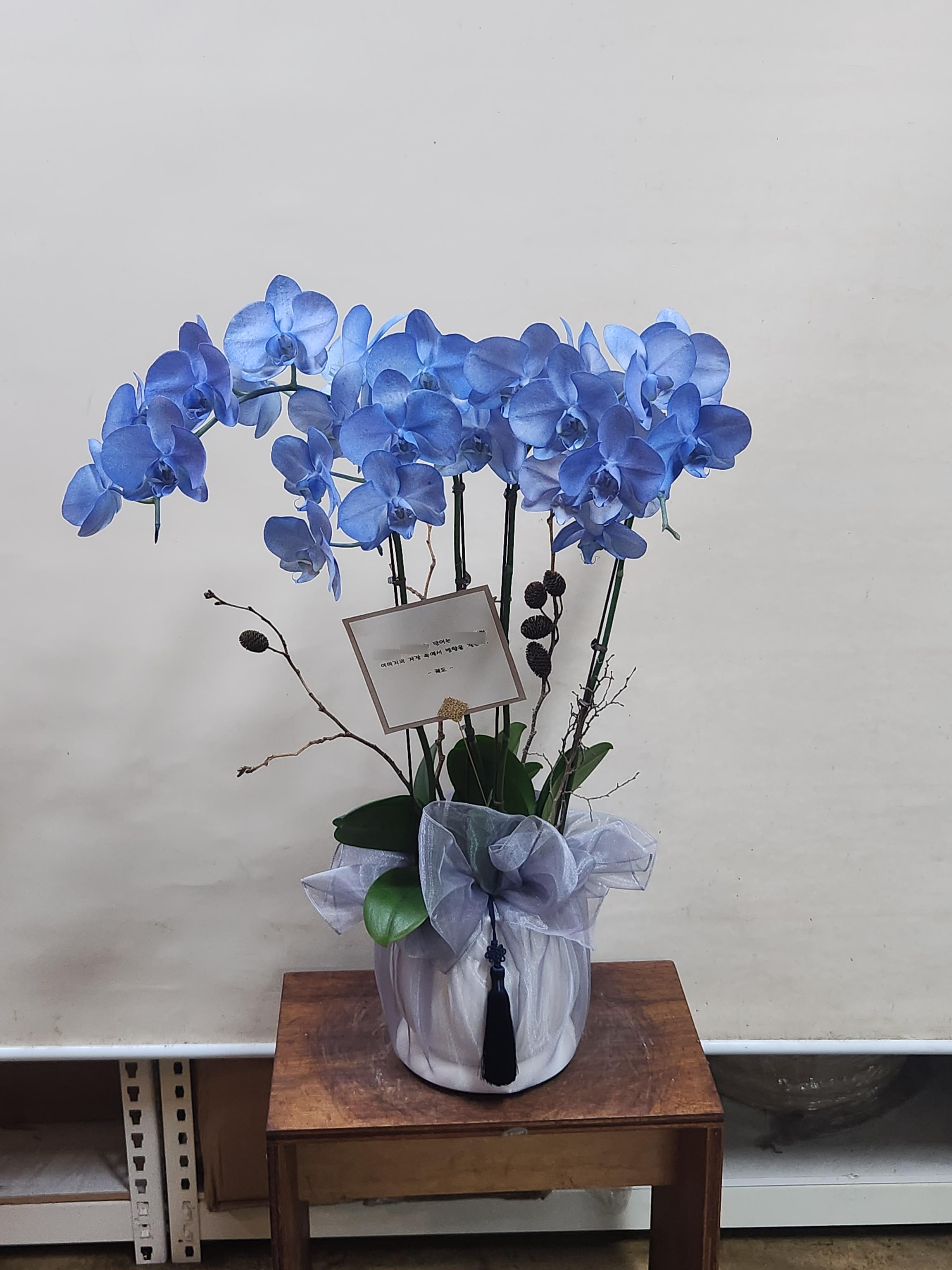 승진 영전 축하난 호접란 부모님 선물 꽃배달 개업화분 문구 오픈 사무실이전 카페호접 블루(4대)-줄무늬 화이트+그레이 보자기