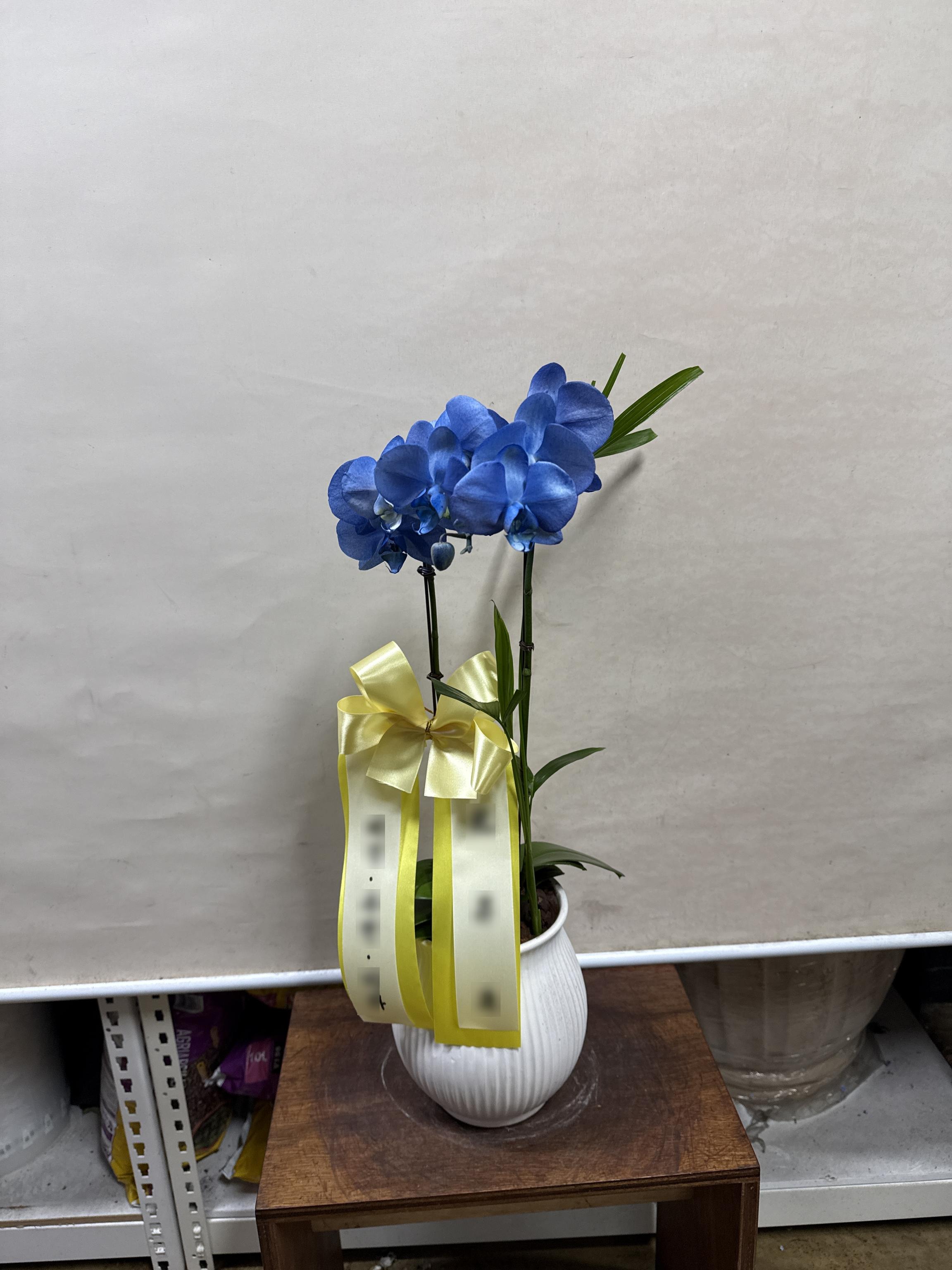 승진 영전 축하난 호접란 부모님 선물 꽃배달 개업화분 문구 오픈 사무실이전 카페호접 블루(2대)-줄무늬 화이트+화이트 보자기